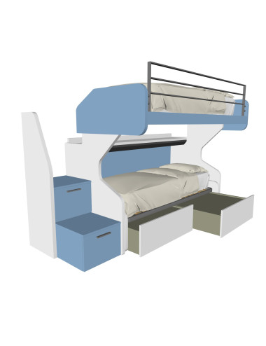 Unser verschiebbares Etagenbett ist die Antwort auf Ihre Bedürfnisse! Dank seines ausgeklügelten Schiebesystems können Sie problemlos auf das obere Bett zugreifen, ohne Platz zu beanspruchen, und so den Platz im Schlafzimmer maximieren.