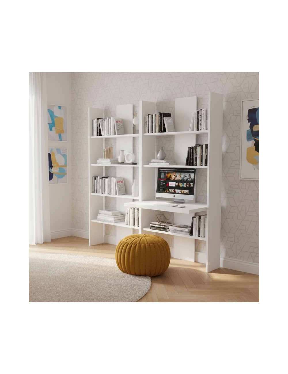 Wählen Sie das Bücherregal mit integriertem Schreibtisch und schaffen Sie eine praktische, organisierte Arbeits- oder Lernumgebung mit einem modernen Design, das Ihre Persönlichkeit und Ihren einzigartigen Stil widerspiegelt.