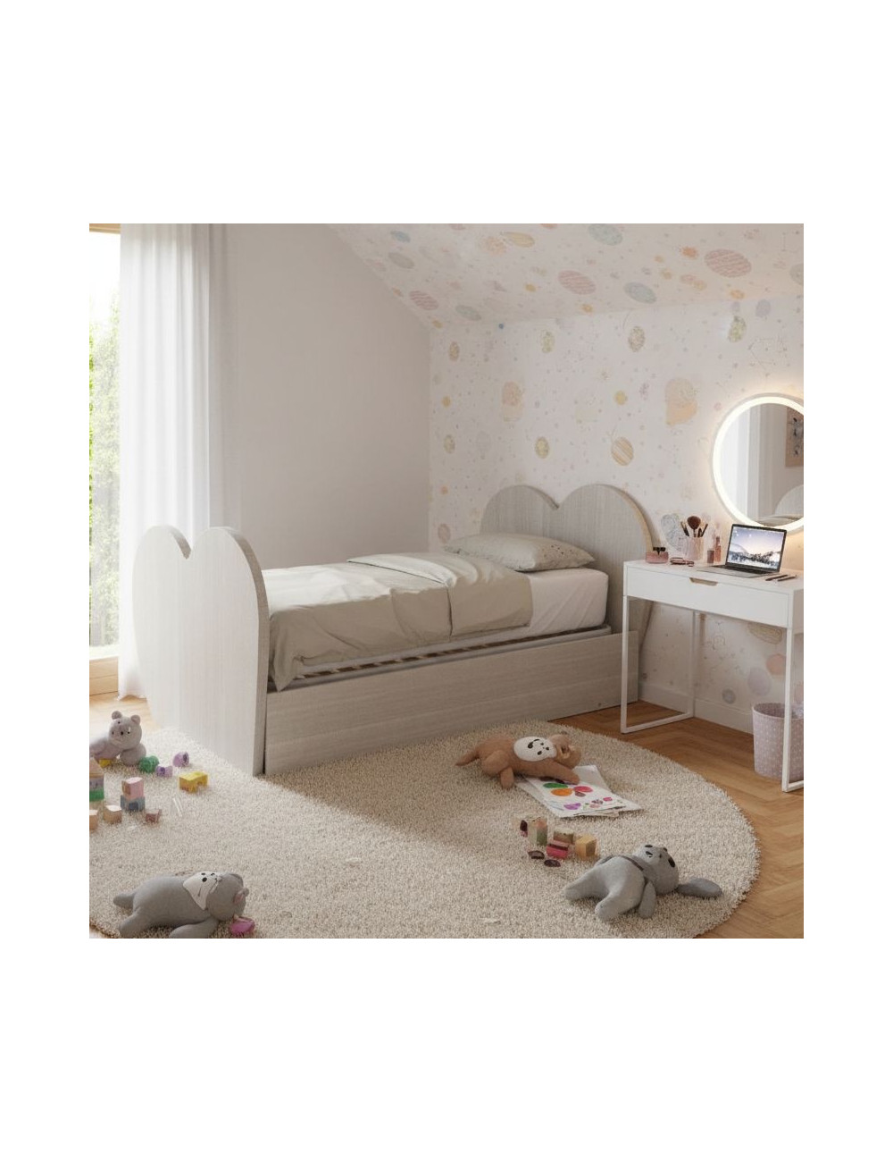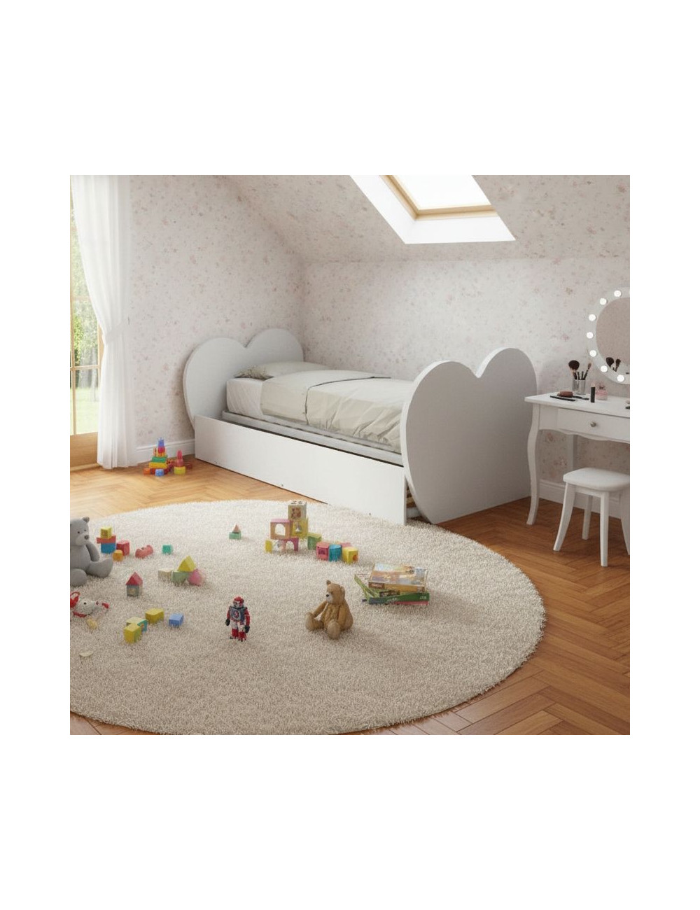 Mit dem herzförmigen Einzelbett mit zweitem Ausziehbett wird das Schlafzimmer zu einem magischen Ort zum Träumen und Wachsen. Eine Investition in Qualität, Design und Funktionalität, um Ihre Kinder in den besten Jahren ihres Lebens zu begleiten.