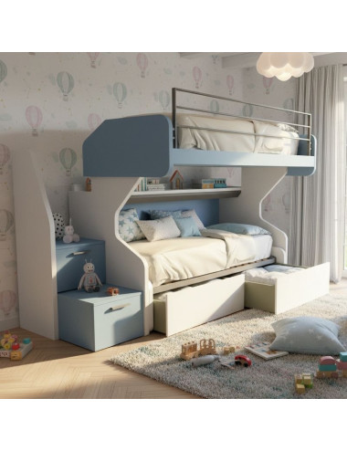 - Escalera con cajones: ofrece un práctico espacio de almacenamiento para guardar juegos, libros y ropa de cama.