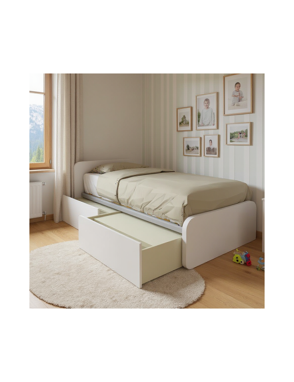 Esta cama individual con cajones es la solución ideal para amueblar el dormitorio infantil con estilo y funcionalidad. Con un diseño moderno y personalizable, se adapta perfectamente a cualquier estilo de decoración.