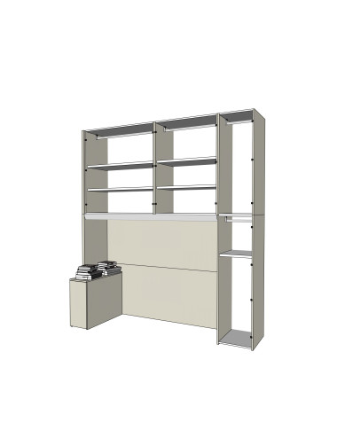 Letto singolo 80x190 con letto estraibile indipendente e sollevabile 80x190 , dal momento in cui si alza andrà a formare un perfetto matrimoniale con il letto principale. Elemento retro letto ad uso comodino, profondo come la testata letto. Armadiatura h 257,8 cm con 4 cassetti larghezza 90 h 16 cm con chiusura rallentata. Elemento a semi ponte che abbraccia il letto, con libreria ad L con profondità ridotta a L .Angolo studio larghezza 135 cm con libreria. Finitura bianco e rovere rock con maniglia cod71.Materassi 80x190 h 18 cm. Sedia non inclusa. Montaggio non incluso_5.jpeg)
