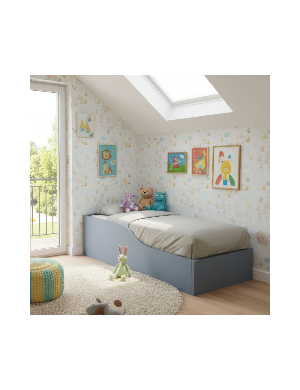 - Diseño Montessori: la altura regulable desde el suelo se adapta al crecimiento del niño, permitiéndole entrar y salir de la cama de forma independiente y segura, favoreciendo la motricidad y confianza en uno mismo.
