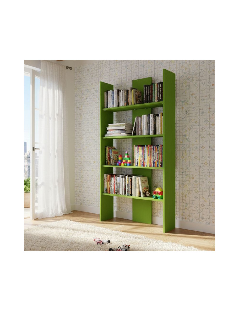 Para garantizar la máxima seguridad, especialmente en presencia de niños, recomendamos montarlo en la pared. La librería se puede componer con otros módulos de la misma serie, permitiéndote crear soluciones personalizadas y adaptarlas a tus necesidades de espacio y estilo.