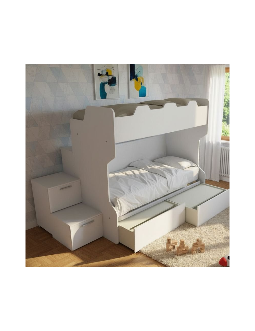 La litera SMARTB es mucho más que una simple cama: es un universo de juego, relajación y funcionalidad, diseñado para optimizar el espacio y estimular la imaginación de los niños. Con su innovadora escalera artesonada integrada, la pasarela retro y las infinitas posibilidades de personalización, SMARTB revoluciona el concepto de dormitorio.