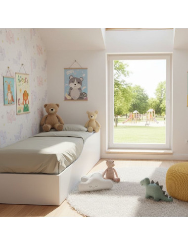 - Design Montessori : la hauteur réglable depuis le sol s'adapte à la croissance de l'enfant, lui permettant d'entrer et de sortir du lit de manière autonome et en toute sécurité, favorisant la motricité et confiance en soi.