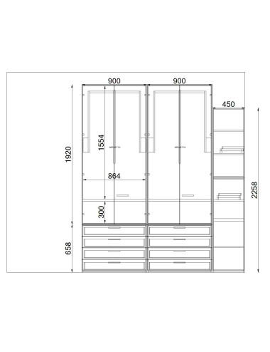 Lit simple 80x190 avec lit gigogne indépendant et relevable 80x190, dès qu'il se lève il formera un lit double parfait avec le lit principal. Élément de lit arrière pour une utilisation en table de chevet, aussi profond que la tête de lit. Armoire h 257,8 cm avec 4 tiroirs largeur 90 h 16 cm avec fermeture amortie. Élément semi-pont qui embrasse le lit, avec bibliothèque en L avec profondeur en L. Coin bureau de 135 cm de large avec bibliothèque. Finition chêne blanc et roche avec poignée cod71.Matelas 80x190 h 18 cm. Chaise non incluse. Assemblage non inclus