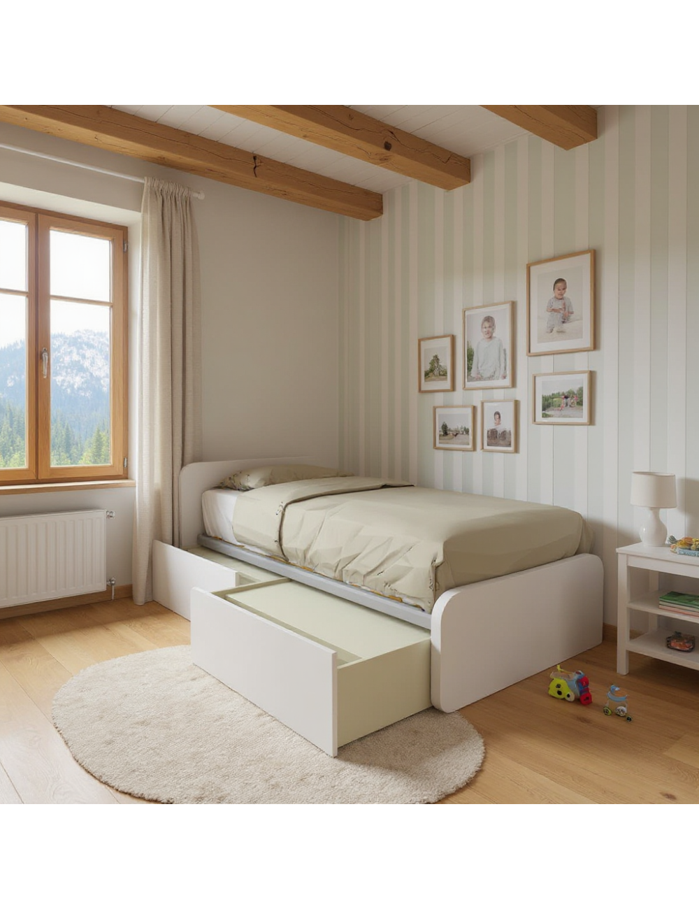 Ce lit simple avec tiroirs est la solution idéale pour meubler une chambre d'enfant avec style et fonctionnalité. Avec un design moderne et personnalisable, il s'adapte parfaitement à tout style d'ameublement.