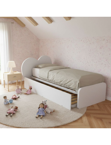 Imaginez une chambre qui murmure douceur et romantisme, où chaque détail inspire des rêves paisibles. Le lit simple en forme de cœur "Cupido" est l'élément parfait pour créer cette atmosphère magique. Sa tête de lit en forme de cœur, symbole universel de l'amour, ajoute une touche de poésie et de personnalité, transformant le lit en un refuge accueillant et spécial.