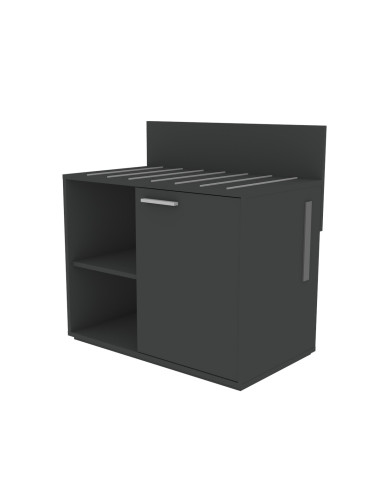 Le plateau supérieur est équipé de tiges qui offrent un support pratique pour des objets tels que des livres, des magazines ou votre smartphone. La grille de ventilation latérale garantit une ventilation correcte, idéale si vous décidez de l'utiliser comme base pour un mini-réfrigérateur.